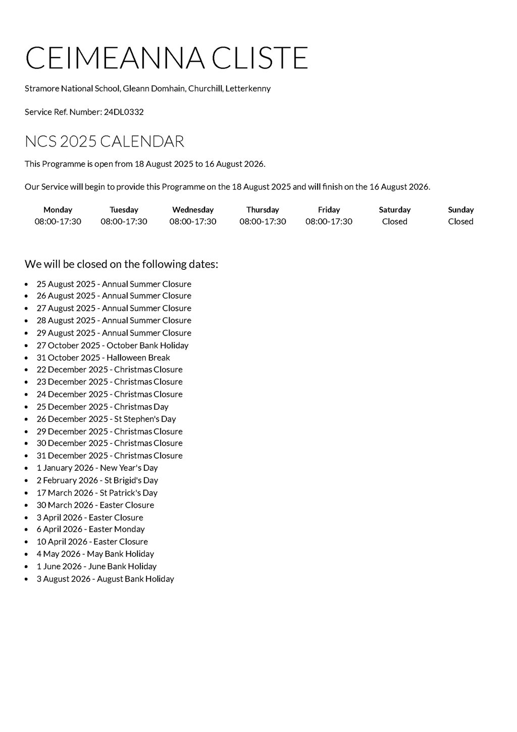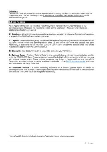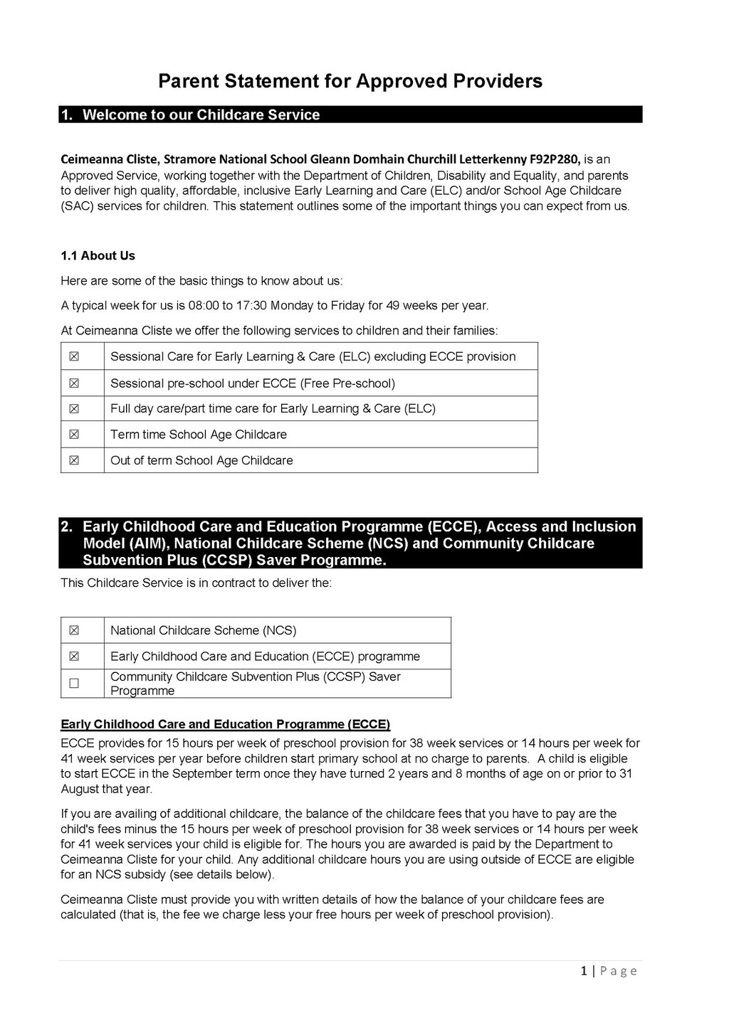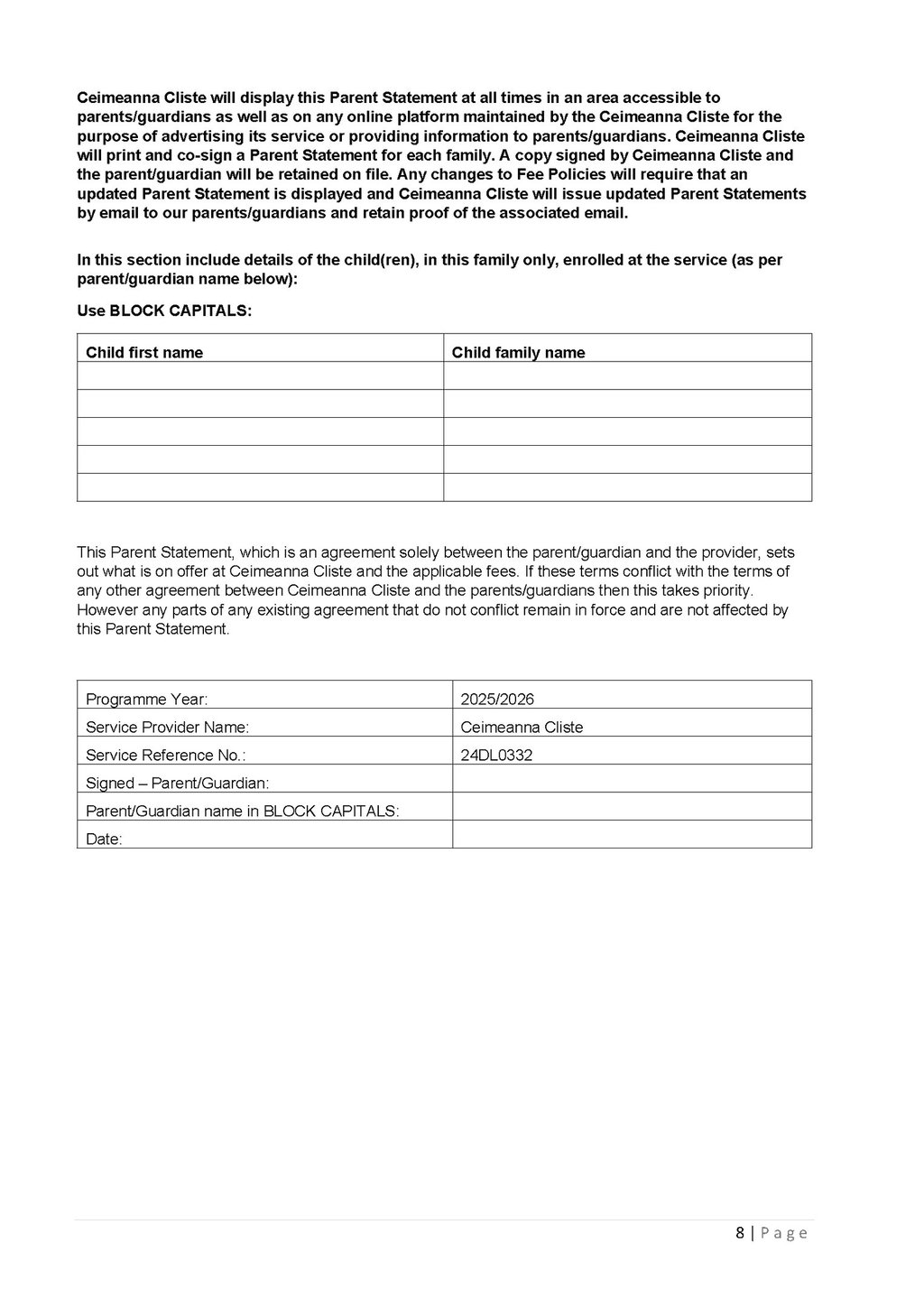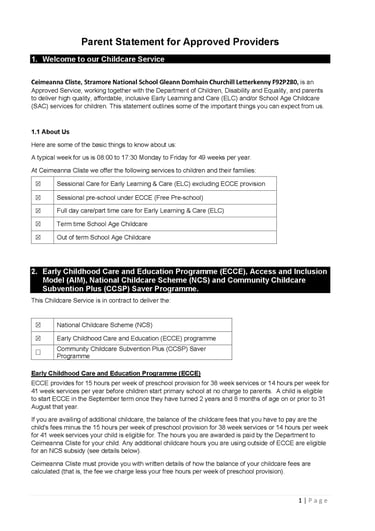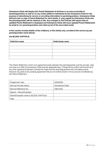 This page provides important information for parents including service policies, fees information, the parent statement and the National Childcare Scheme service calendar.