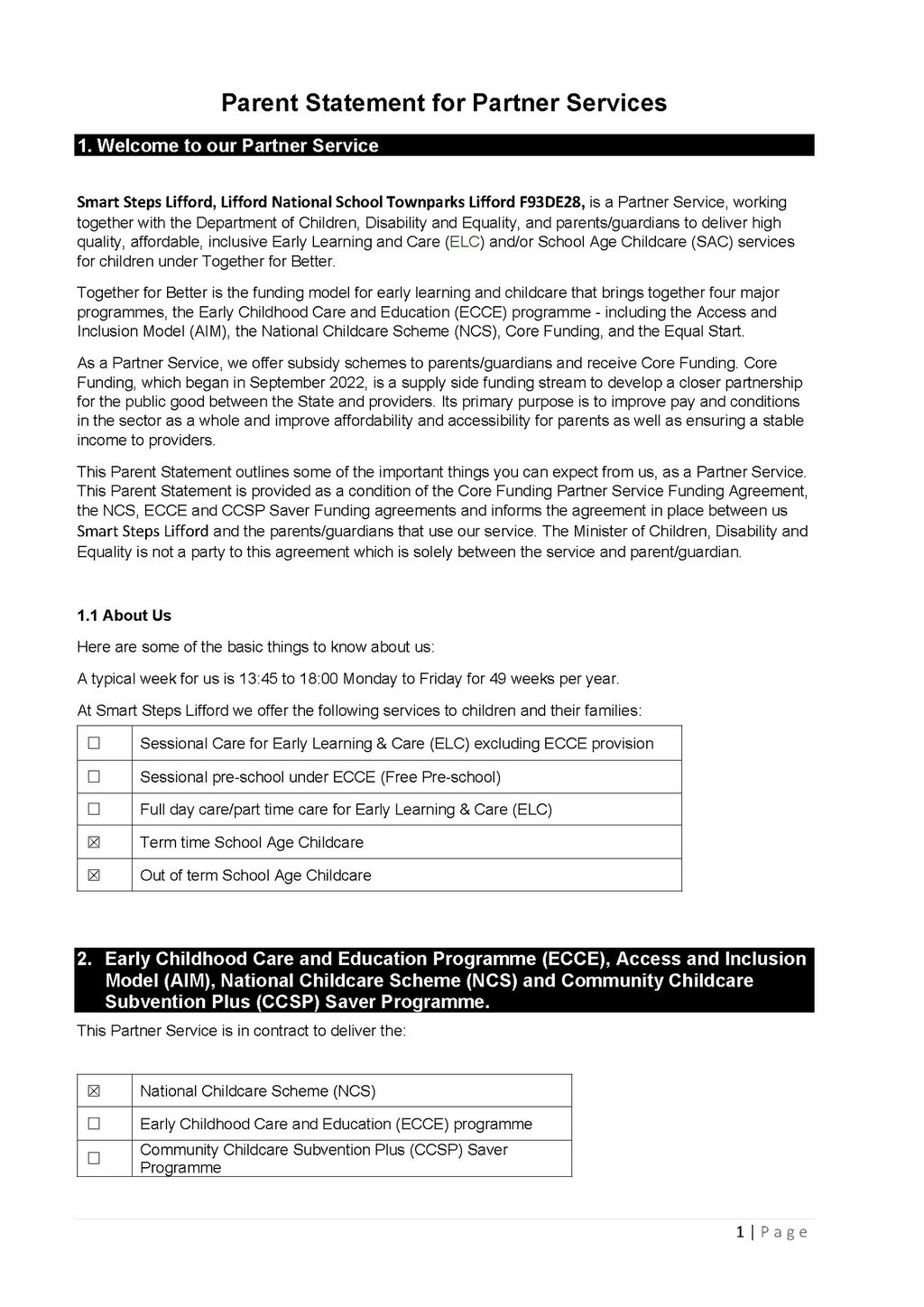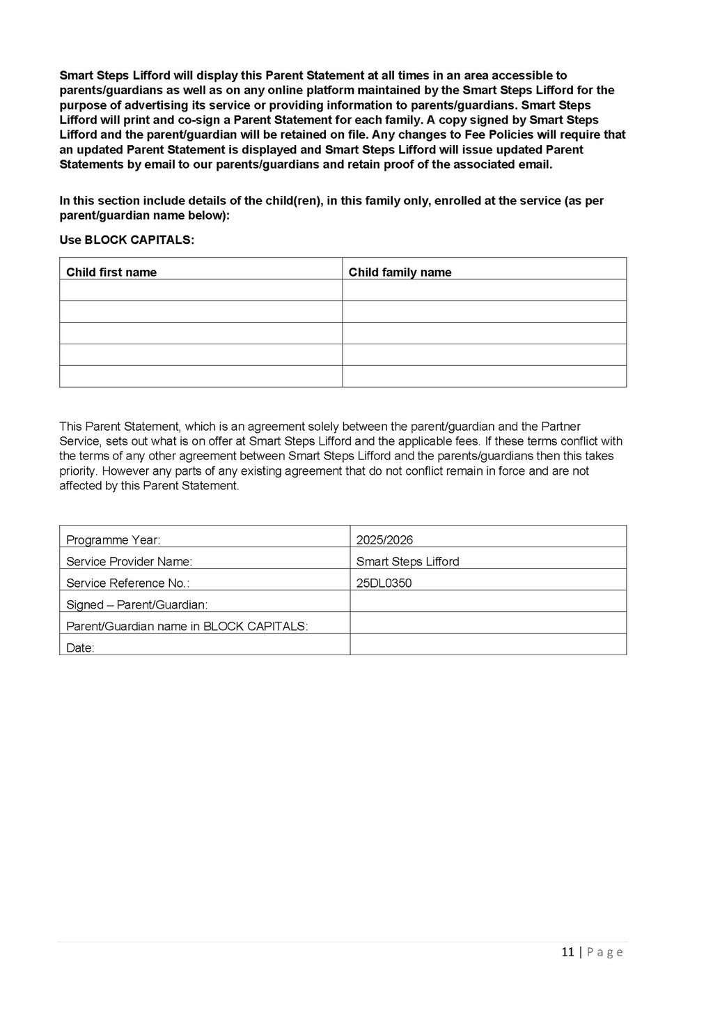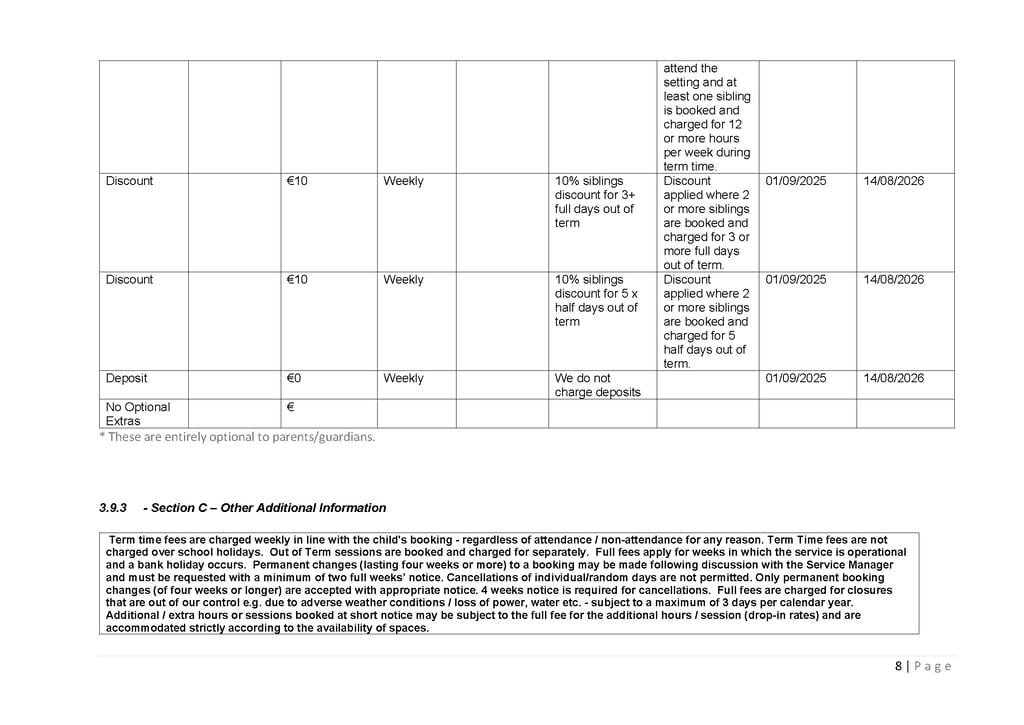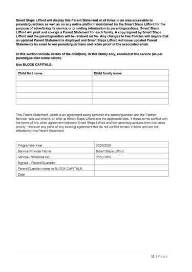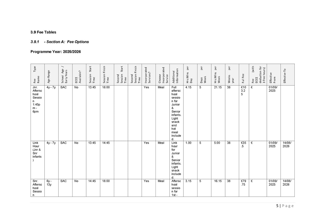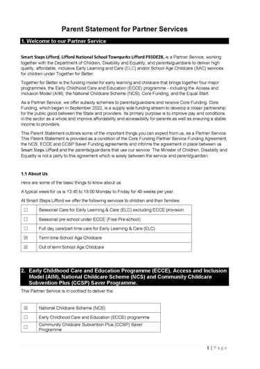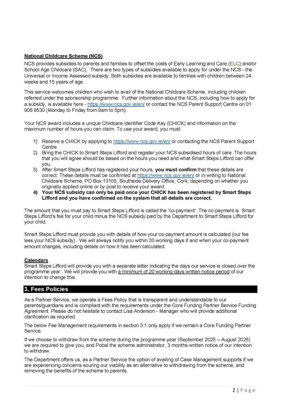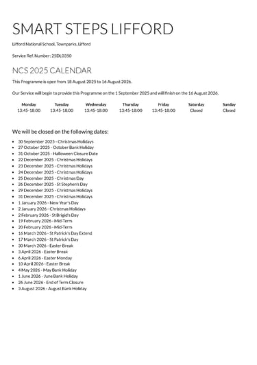 This page provides important information for parents including fees information, the parent statement and the National Childcare Scheme service calendar.